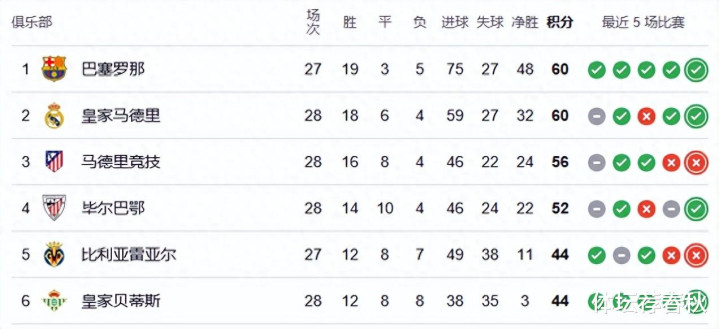 本赛季,西甲朱门巴塞罗那全面复苏。现在,球队在联赛中27战19胜3平5负,与皇家马德里并驾皆驱,依靠着净胜球的上风名次积分榜的第一位。现在,巴萨、皇家马德里和马德里竞技三强将连续争夺冠军。最终谁能捧杯,就要看3支球队谁能保抓饱和好的景况了。